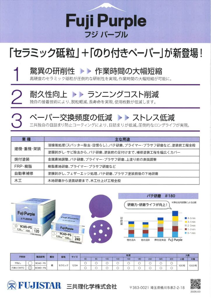 3. 【新商品】Fuji Purple(フジ パープル)~セラミック(砥粒)+のり付きペーパー~